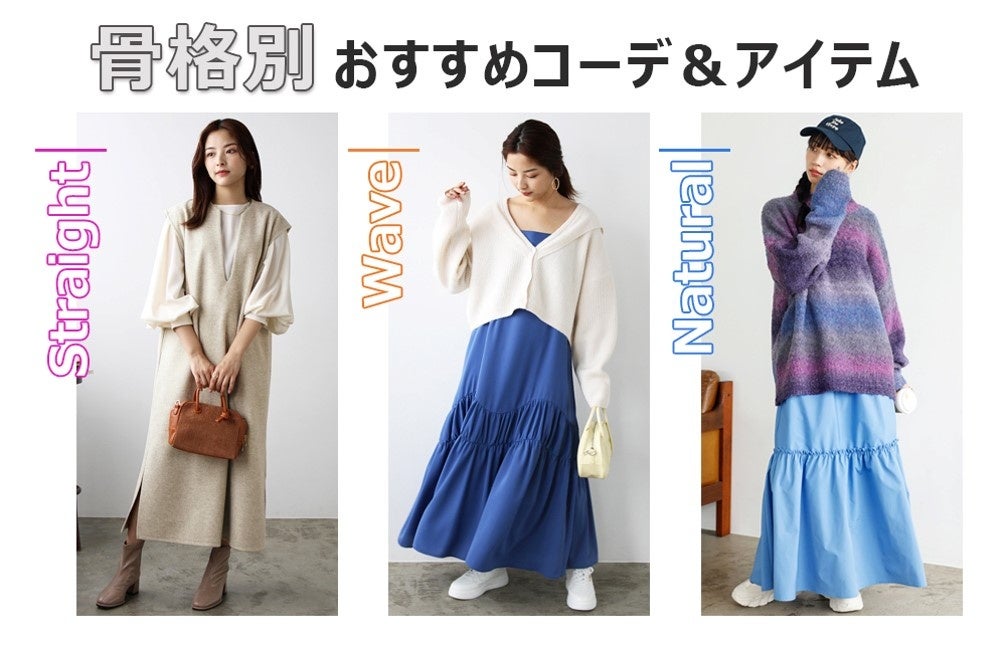 骨格タイプとは、生まれ持った身体の質感やラインの特徴から、「ストレート」「ウェーブ」「ナチュラル」の