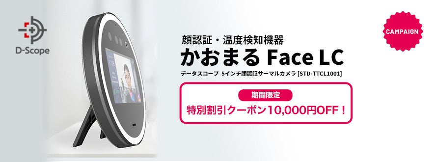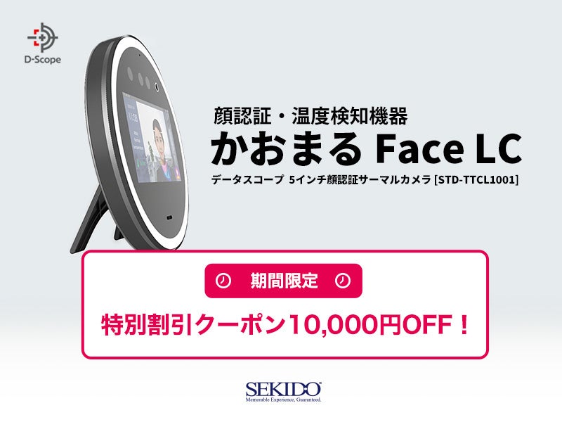 株式会社セキド(本社:東京都国立市、代表取締役:大下貴之、以下「セキド」)では、店舗やオフィスで手軽に検温やマスク検知ができる高いデザイン性を有する丸型の顔認証・温度検知機器「Face LC」(フェイス LC、通称「かおまる」)が、10,000円OFFで購入できるクーポンのプレゼントを開始いたしました。