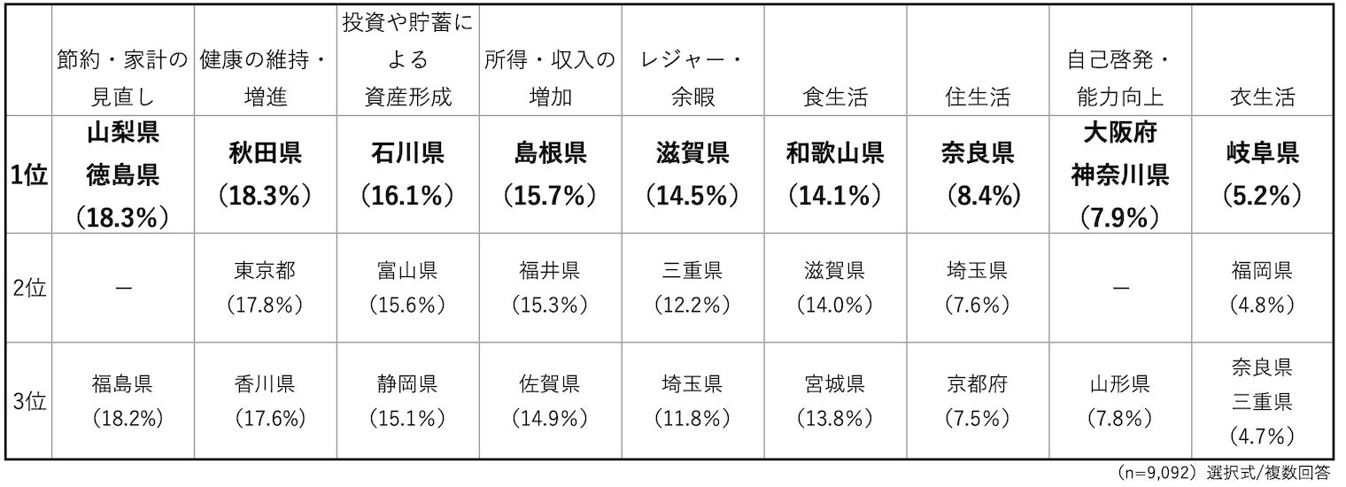 今後注力したいこと「節約・家計の見直し」1位は山梨県・徳島県