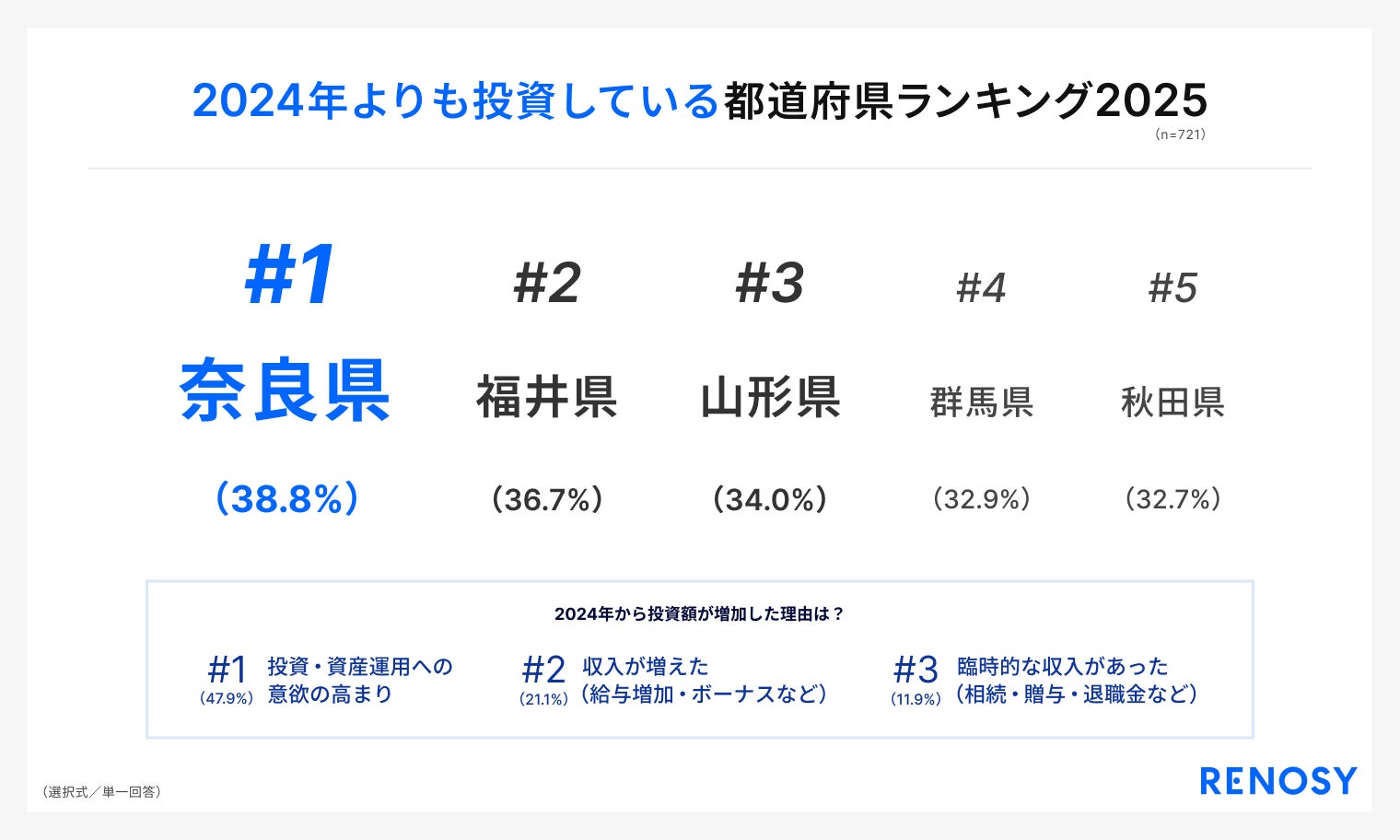 「2024年よりも投資している」1位は奈良県。投資額増加の理由は 「投資・資産運用への意欲の高まり」