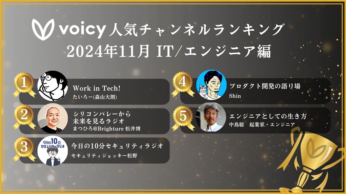 今後、「IT/エンジニア」カテゴリに関連した発信をされているチャンネルのうち、最も聞かれているTOP30を毎月発表していきます。