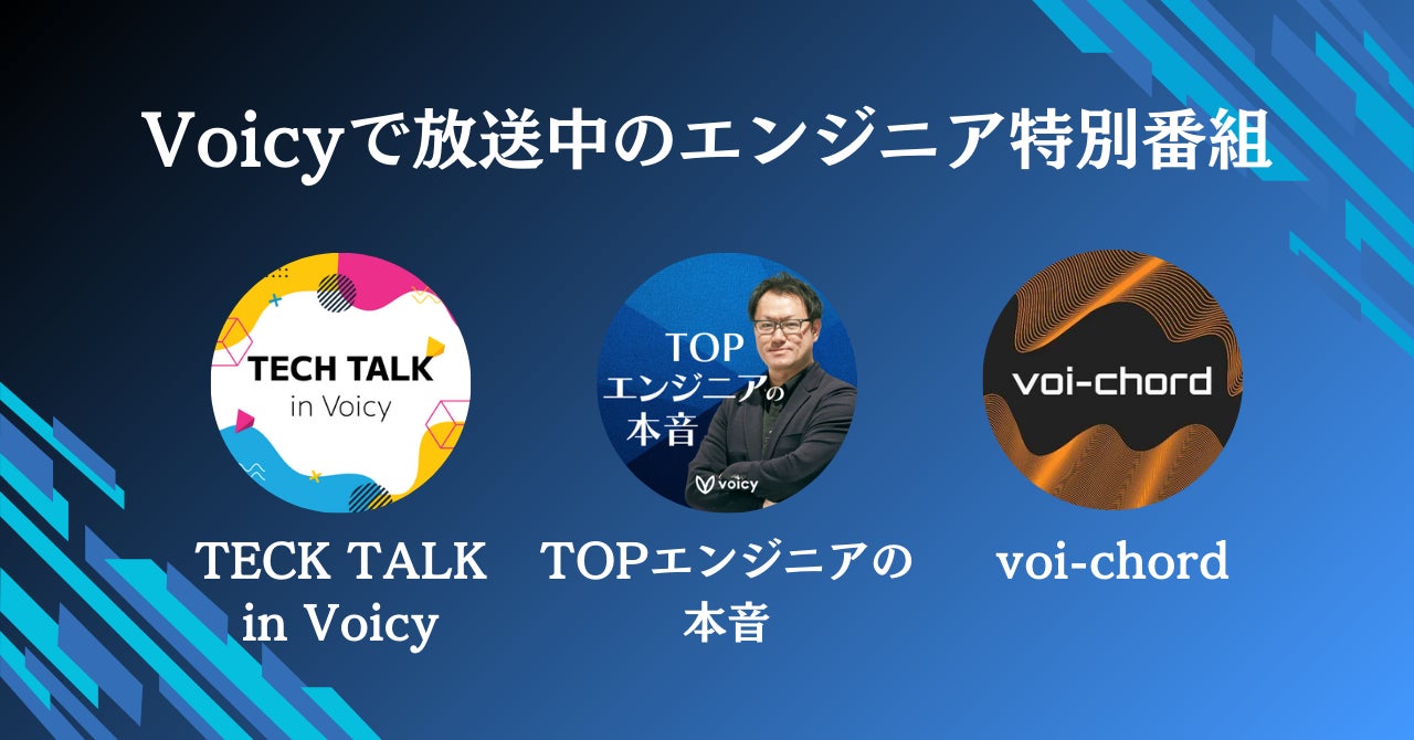 テックの専門分野を深堀りする「TECK TALK in Voicy」や、今村雅幸さんがMCとなって最前線のエンジニアと対談していく「TOPエンジニアの本音」など、Voicyだけでしか聴けないエンジニアの方向けの特別番組がスタートしています。