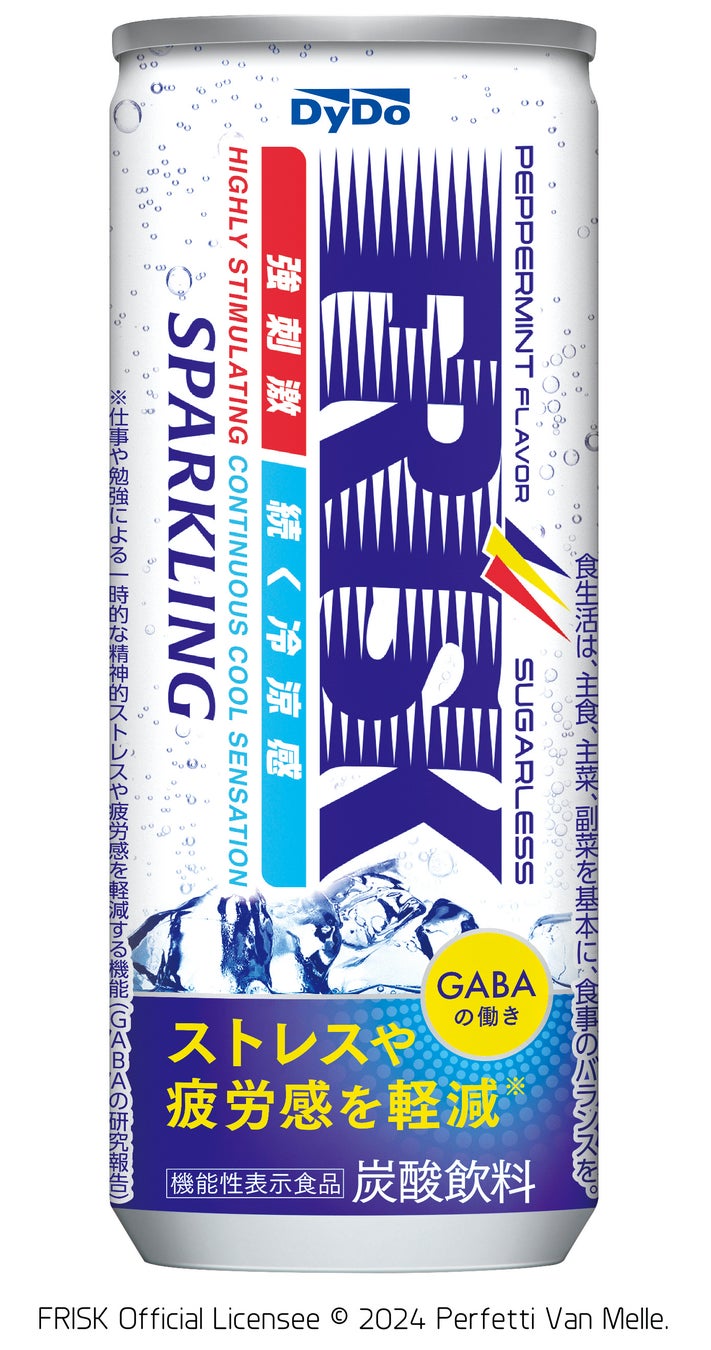 「FRISK SPARKLING」はダイドードリンコ株式会社が2024年春夏に販売した、世界で初めて(※)「FRISK(フリスク)」のライセンスを使用した炭酸飲料。
