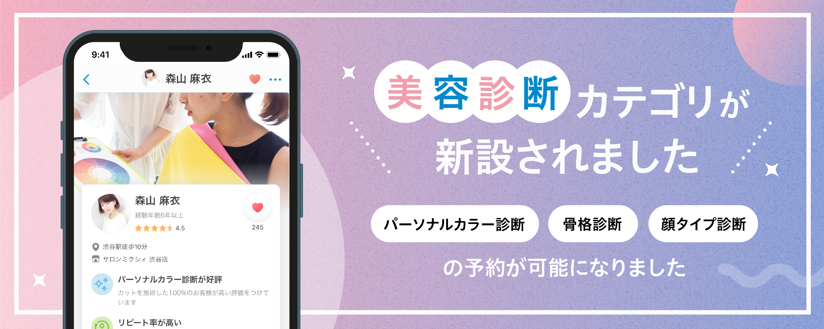 株式会社MIXI(東京都渋谷区、代表取締役社長:木村 弘毅)が提供する、サロンスタッフ直接予約アプリ「minimo」(以下ミニモ)は、本日3月22日(水)よりパーソナルカラー診断や骨格診断など「美容診断」のカテゴリを新設しました。