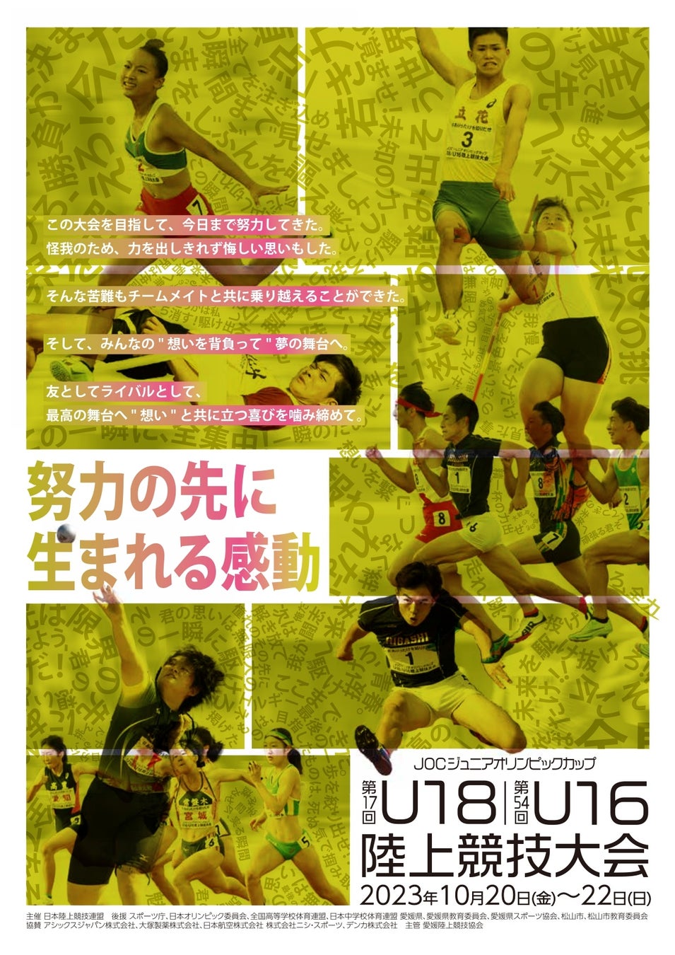 【第17回U18 / 第54回U16 陸上競技大会】応募総数229作品の中から大会キャッチコピーが決定!!大会キービジュアルも同時公開!