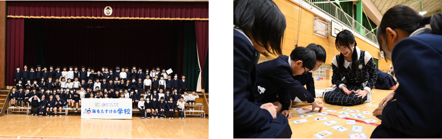 いつも以上に子どもたちもノリノリでした。そして海のごみの問題について、しっかり考えようとする姿をたくさん見ることができました。今まで海のごみについて考える機会もなかったと思うので、クイズやかるたをしながら新しい知識を得ることができたと思います。今日はごみ拾いができなかったですが、別日に授業として外にごみ拾いに行き、授業で学んだことを今後に活かしていければと思います。