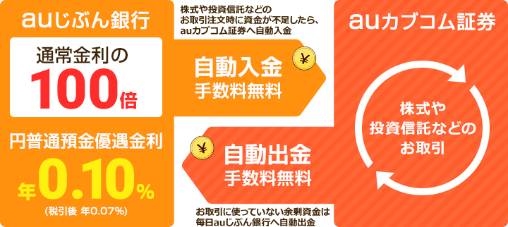 これからもauじぶん銀行とauカブコム証券はお客さまの利便性追求に向けて一層の努力をしてまいります。
