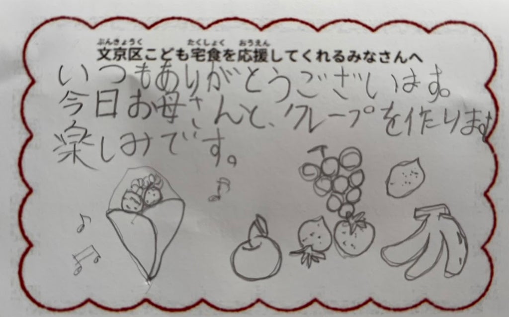 文京区こども宅食を利用する親子からはこのようなメッセージをいただいています。