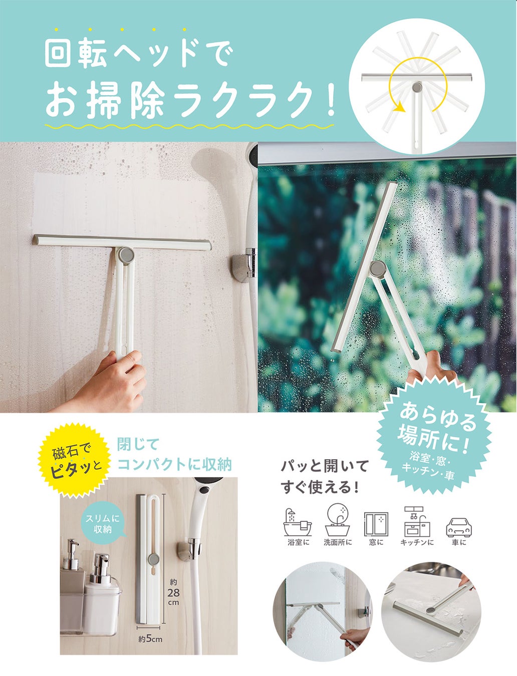 回転ヘッドでお掃除ラクラク!「磁石でピタッと!水切りワイパー」を10月1日より発売