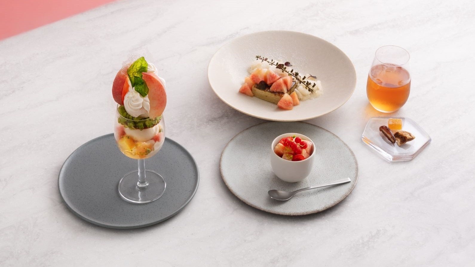 【国産の桃をたっぷり】まぶしい季節をジューシーに彩る、甘くとろける桃づくしのスイーツフルコース@Beauty Connection Ginza 2F フルーツサロンにて
