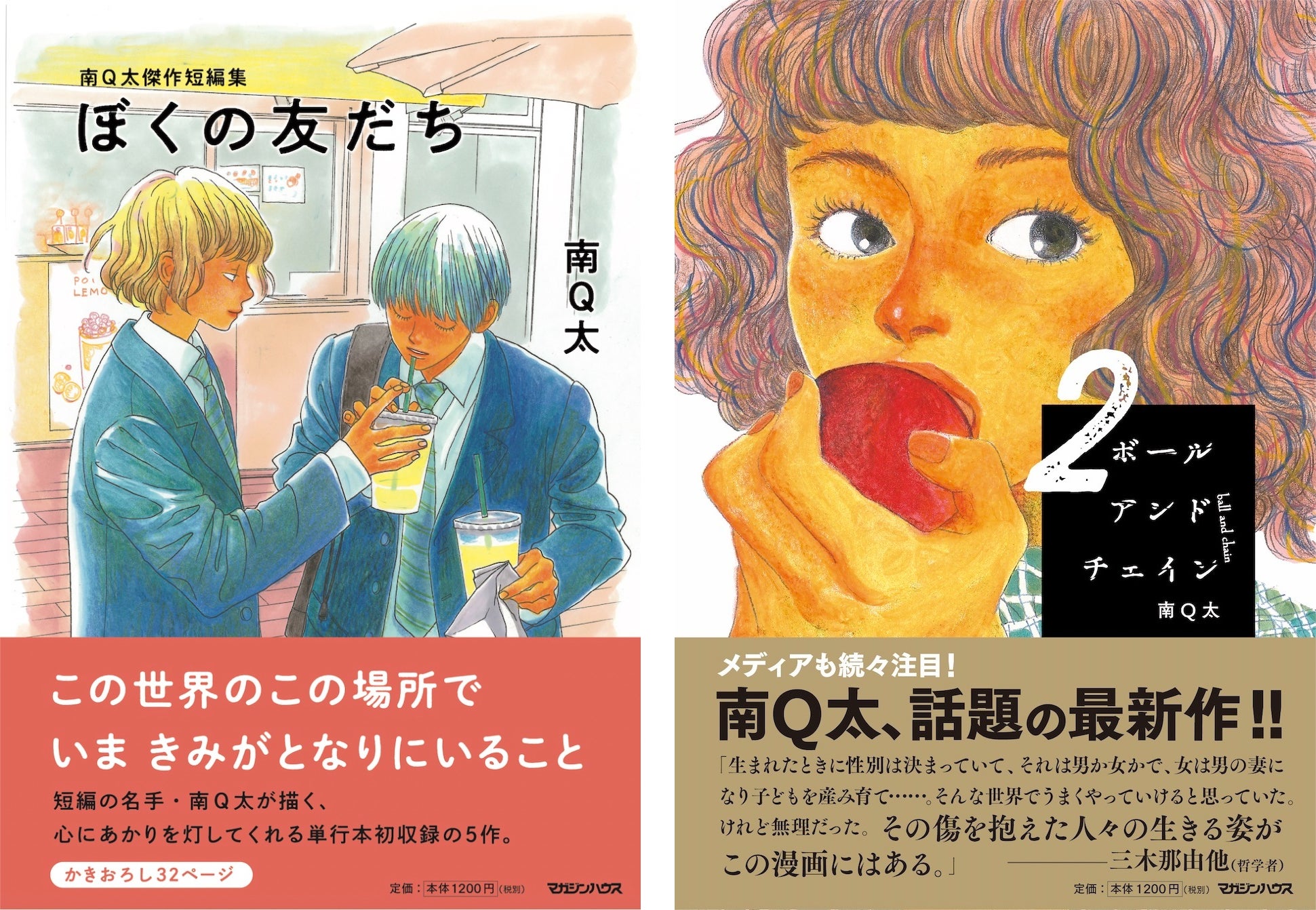 このたび8月2日に、単行本初収録となる南Q太の短編5作品を収録した『南Q太傑作短編集 ぼくの友だち』を発売いたします。それと同時に、マガジンハウスのWebマンガサイト「SHURO」&Web版「GINZA」にて大好評連載中の『ボールアンドチェイン』の単行本第2巻を発売することになりました。