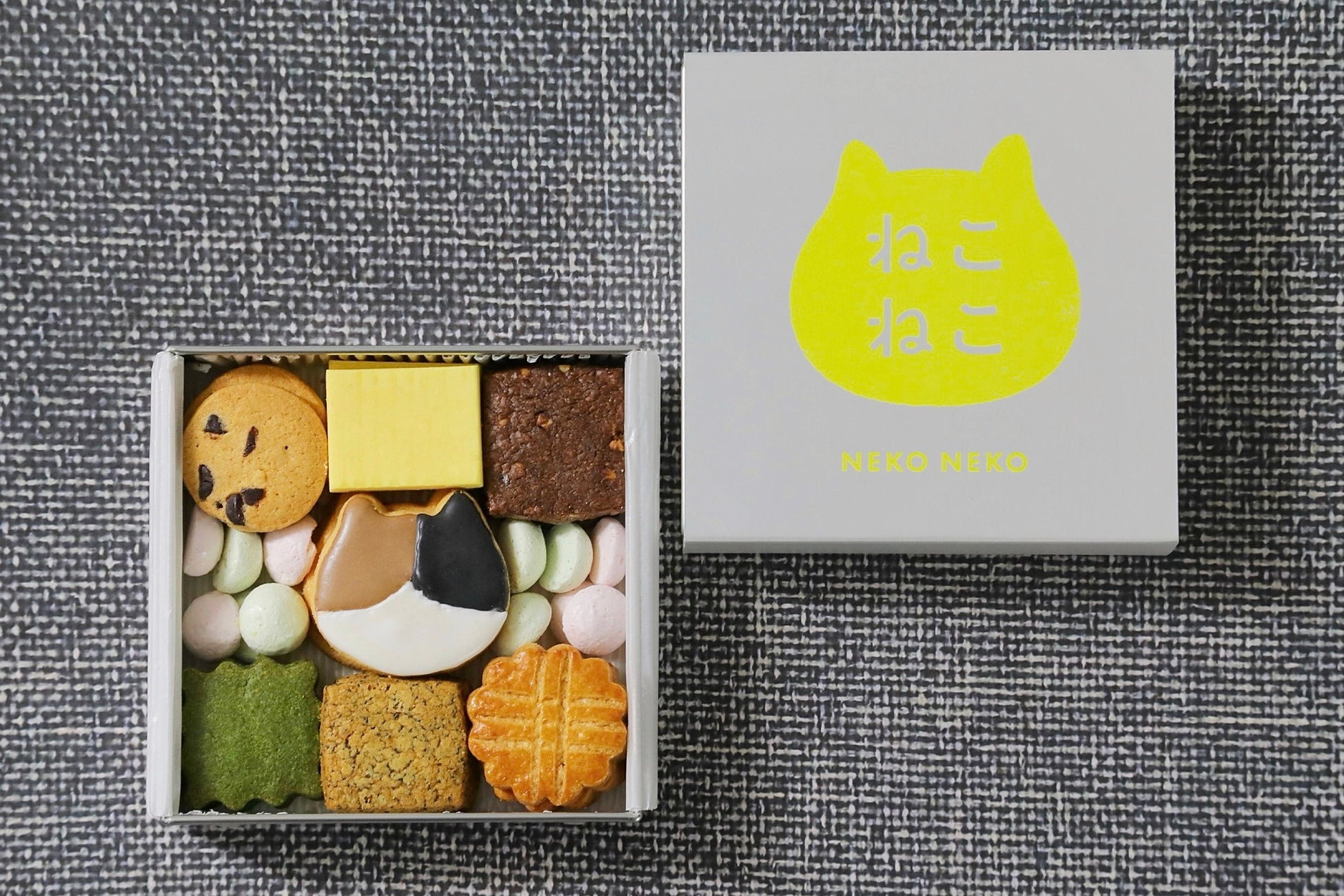 チョコチップクッキーやガレットブルトンヌなど、様々な味わい焼き菓子をアソートにしました。なんといっても主役は可愛らしい三毛猫のアイシングクッキー。ねこ好きな方へのギフトにもぴったりな商品です。バラエティー豊かなフレーバーを味わえるので、最後まで飽きることなくお楽しみいただけます。●ねこねこクッキー缶