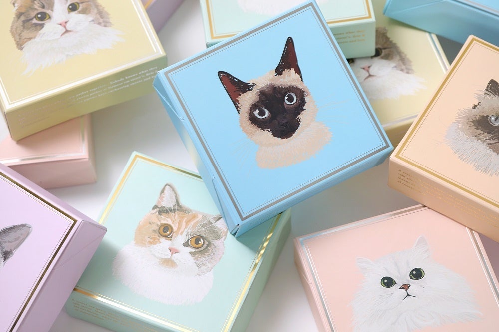 「にゃんチー」や「ふぃにゃんシェ」のボックスは、ねこ好きにたまらないオリジナルのデザインでご用意いたします。