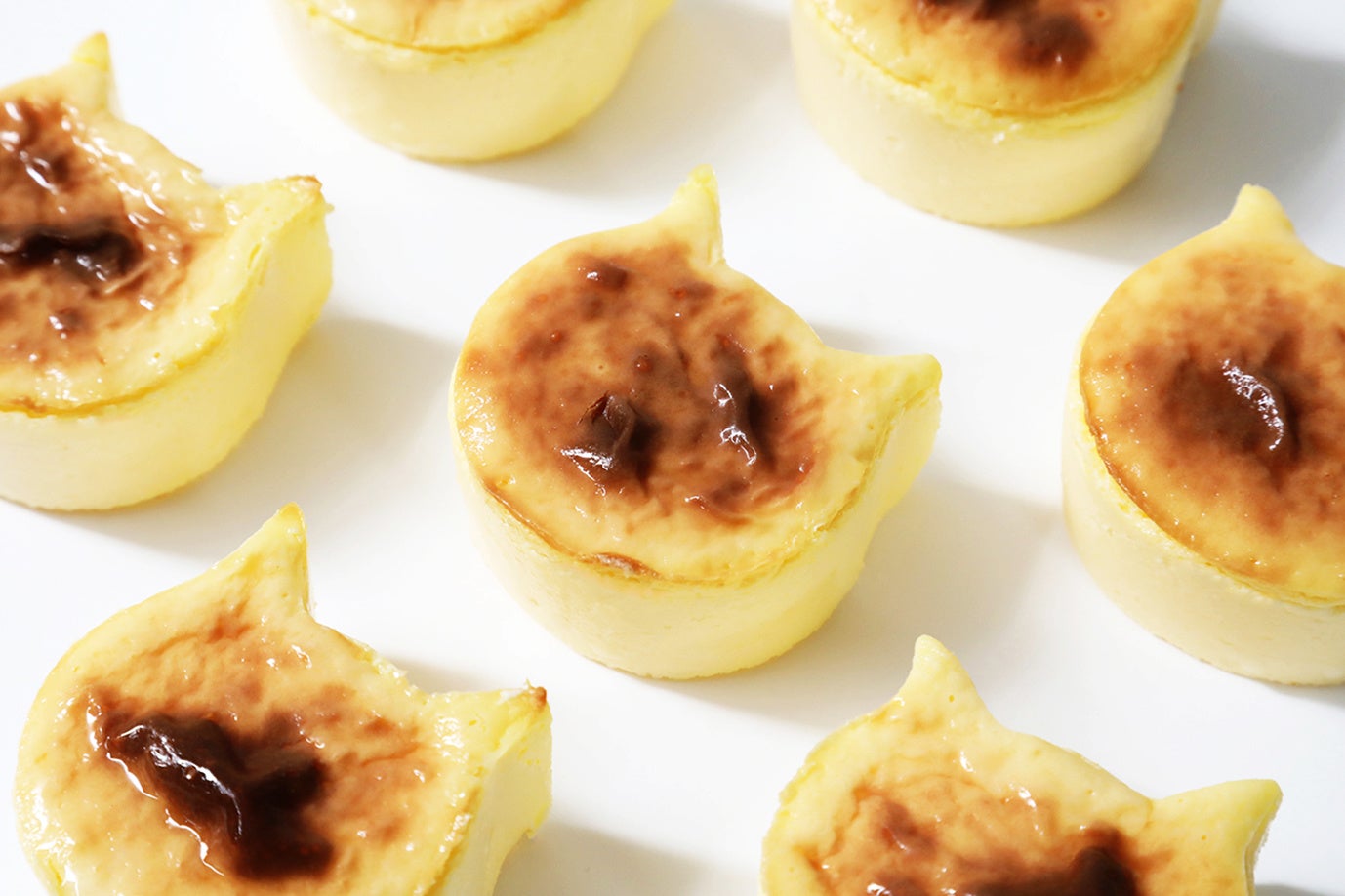 丁寧に高温焼成をすることでこんがりと焼き色を付け、バスク風に仕上げた「にゃんチー」。外はこんがり、中はとろりと濃厚で本格的な味わいのチーズケーキです。ころんと可愛らしいミニサイズで食べやすく、ギフトにもおすすめの商品。ねこ好きさんが集まるティータイムの手土産としてもぴったりです。