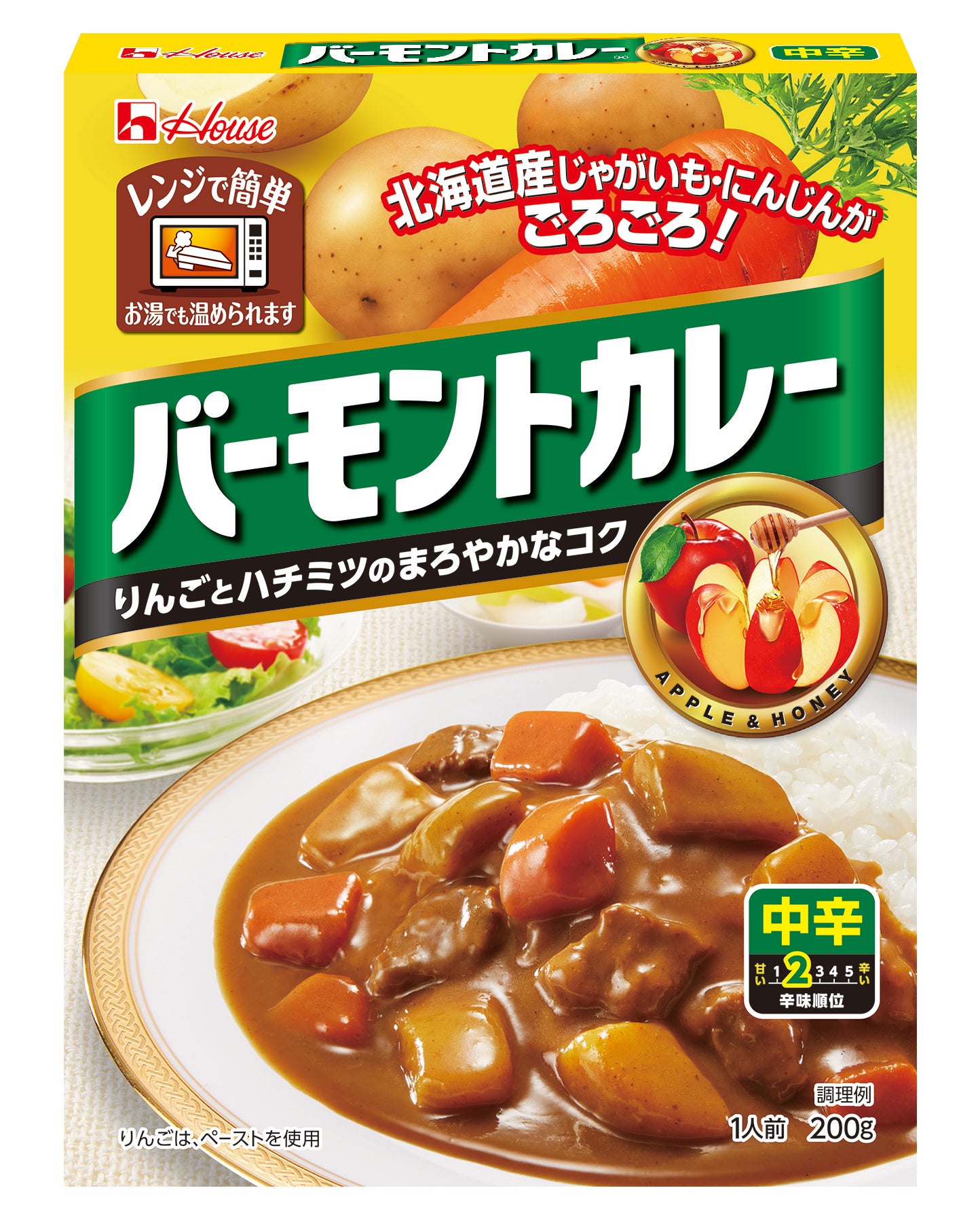 ハウス食品は、今年で60周年を迎える「バーモントカレー」ブランドから、初のレトルトタイプである「レトルトバーモントカレー」<甘口>・<中辛>を、2月13日からスーパーなどで発売します。北海道産のじゃがいも、にんじんがごろごろ入った具だくさんなレトルトカレーとなっており、家庭で作るいつものバーモントカレーの味わいを、電子レンジで温めるだけでいつでも手軽に楽しめます。内容量は200g、オープン価格(税別参考小売価格283円)。