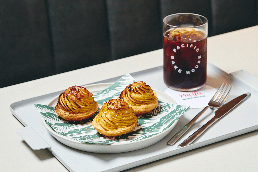 スイートポテトにキャラメルカスタードを合わせ、パイのサクサク食感と甘みを引き立てるハワイアンソルトとシナモンの香りを添えました。層ごとに変わるコクと余韻を楽しめる、誰もが手を伸ばしたくなる秋のスイーツです。Pacificブランドの“ハワイアンらしさ”を意識し、親しみやすいパイ生地やキャラメルカスタードに、ハワイアンソルトやシナモンの香りを掛け合わせることでPacific BAKE HOUSEらしさを表現しました。
