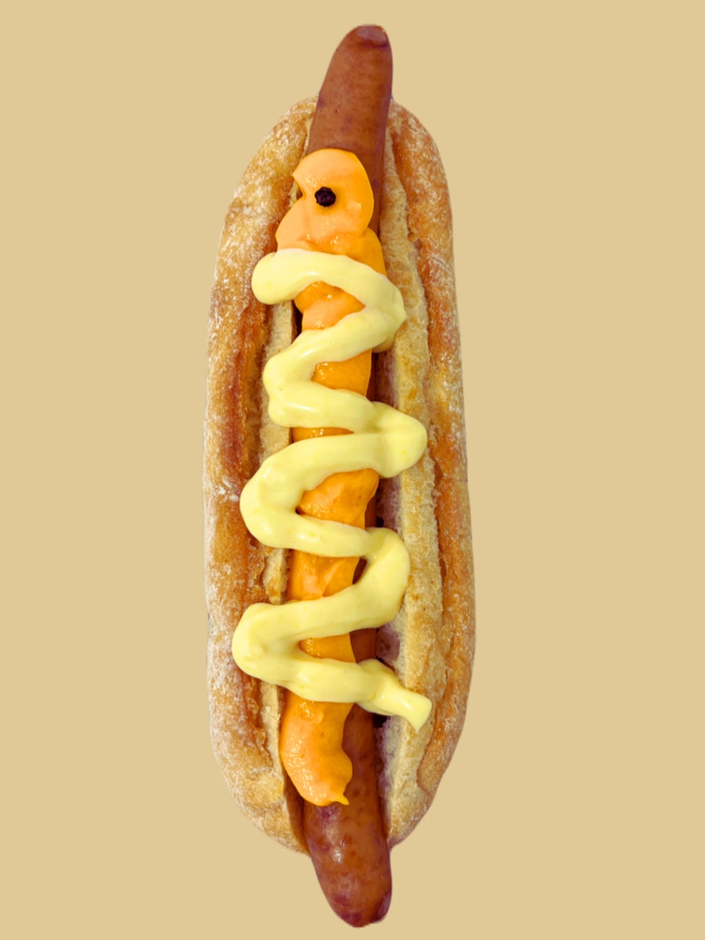 内容:まるでニシキアナゴのような色合いのホットドッグ。11月11日はチーズの日&チンアナゴ・ニシキアナゴの日であることにもちなみ、5種のチーズソースでニシキアナゴの模様を表現しました。