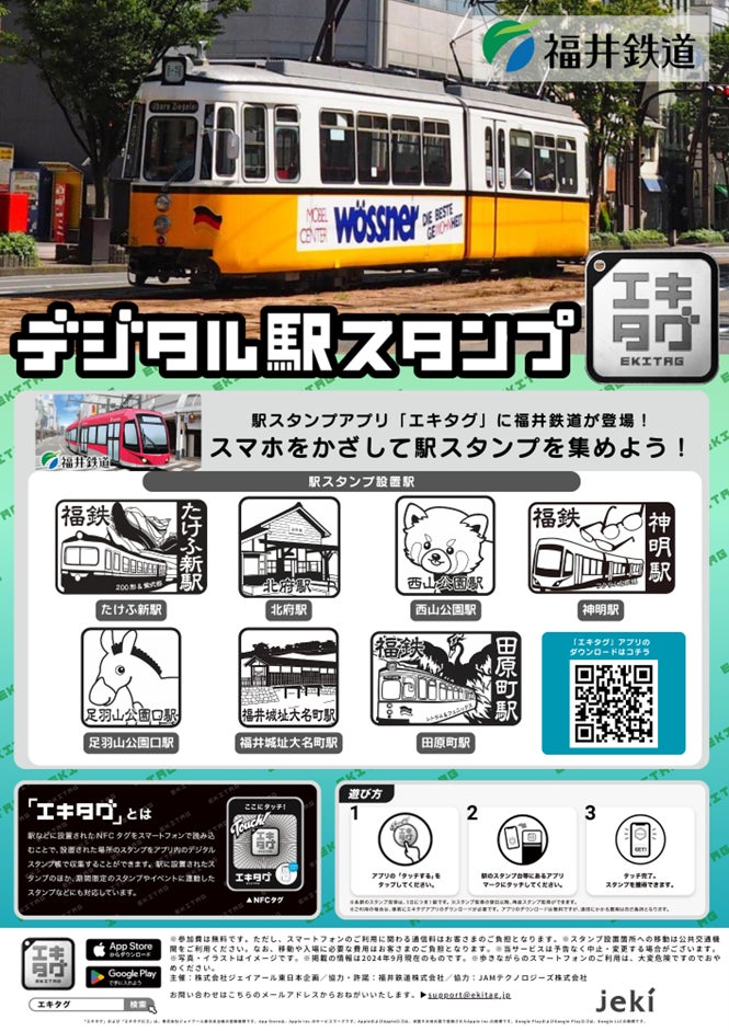 ◎駅スタンプアプリ「エキタグ」では、2024年10月1日(火)より「福井鉄道」「えちぜん鉄道」「ハピラインふくい」にエキタグがデビューします。