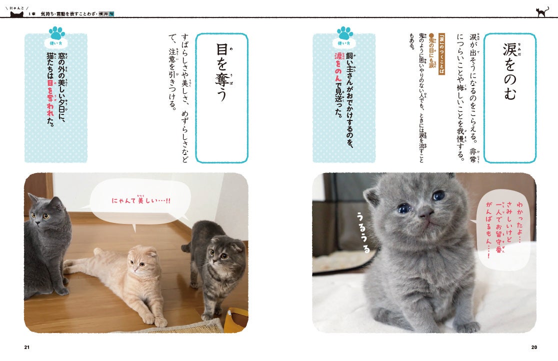 にゃんこ写真によるイマジネーションが記憶をサポートしてくれるので、言葉の意味がしっかり入りやすい。