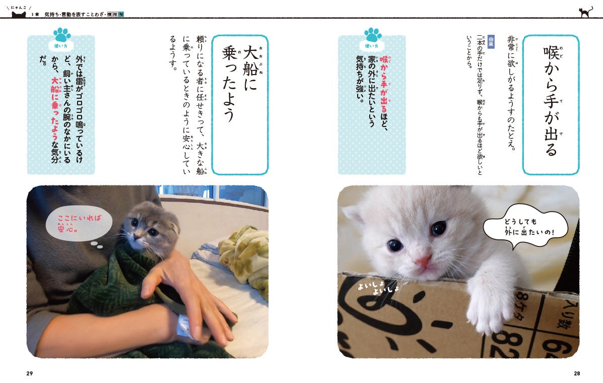 ことわざ、慣用句を猫の写真で覚える作品。楽しみながら学べます!
