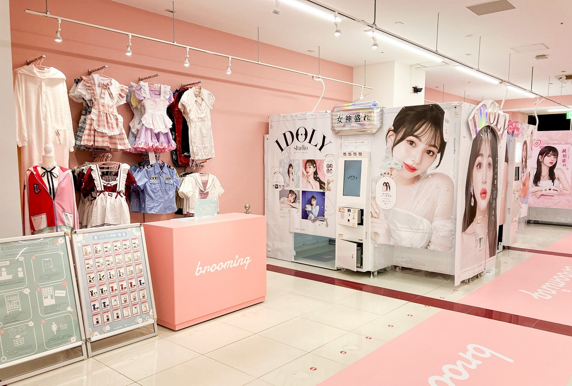 ※brooming:blooming[花盛り、美しさ]+ room[空間、部屋]を意味し、「かわいい」に浸れる空間、楽しいを共有できる空間、自分らしく輝ける空間で、「最高にかわいく!自分らしく輝ける!」をテーマにしたプリントシール機専門店。