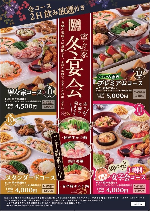 アトム・寧々家/暖や「早いご予約が断然お得!冬の宴会&ご馳走スタート」