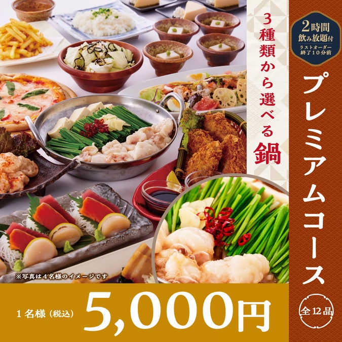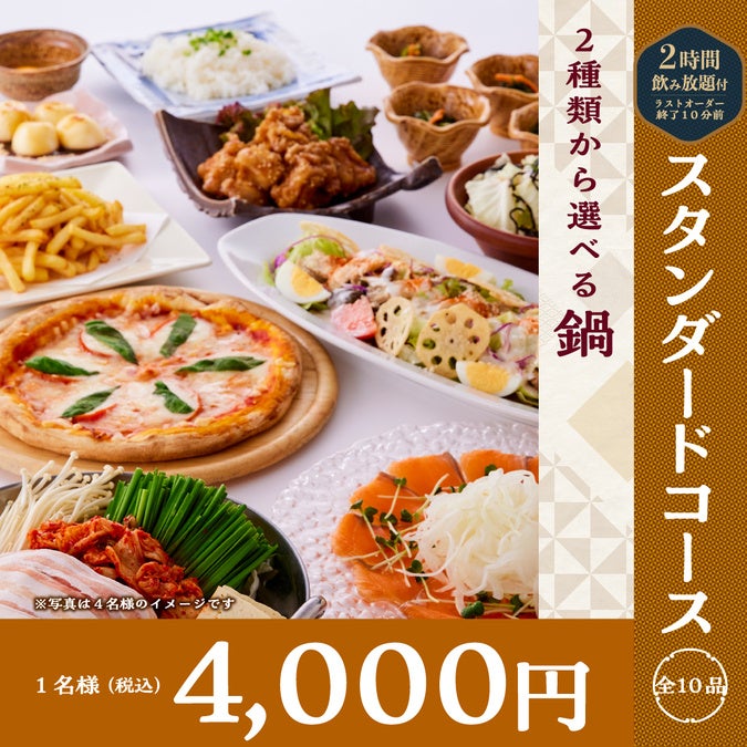 飲み会は久しぶりに「お店で」というお客様にピッタリのコース、飲み放題2時間付き・お料理全10品(選べる鍋付き)コースを4,000円よりご用意。更にグレードの高い4,500円・5,000円コース・更に女子会コースもご用意し満足間違いなしです。お鍋はコースに応じて「国産牛もつ鍋」「鶏白湯鍋」「旨辛キムチ鍋」から選択でお楽しみ頂けます。