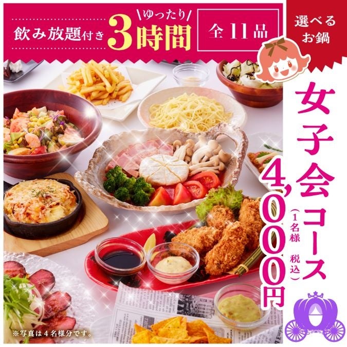 ・2時間の各種宴会コースをご予約すると「宴会ご利用時間が3時間(飲み放題)」