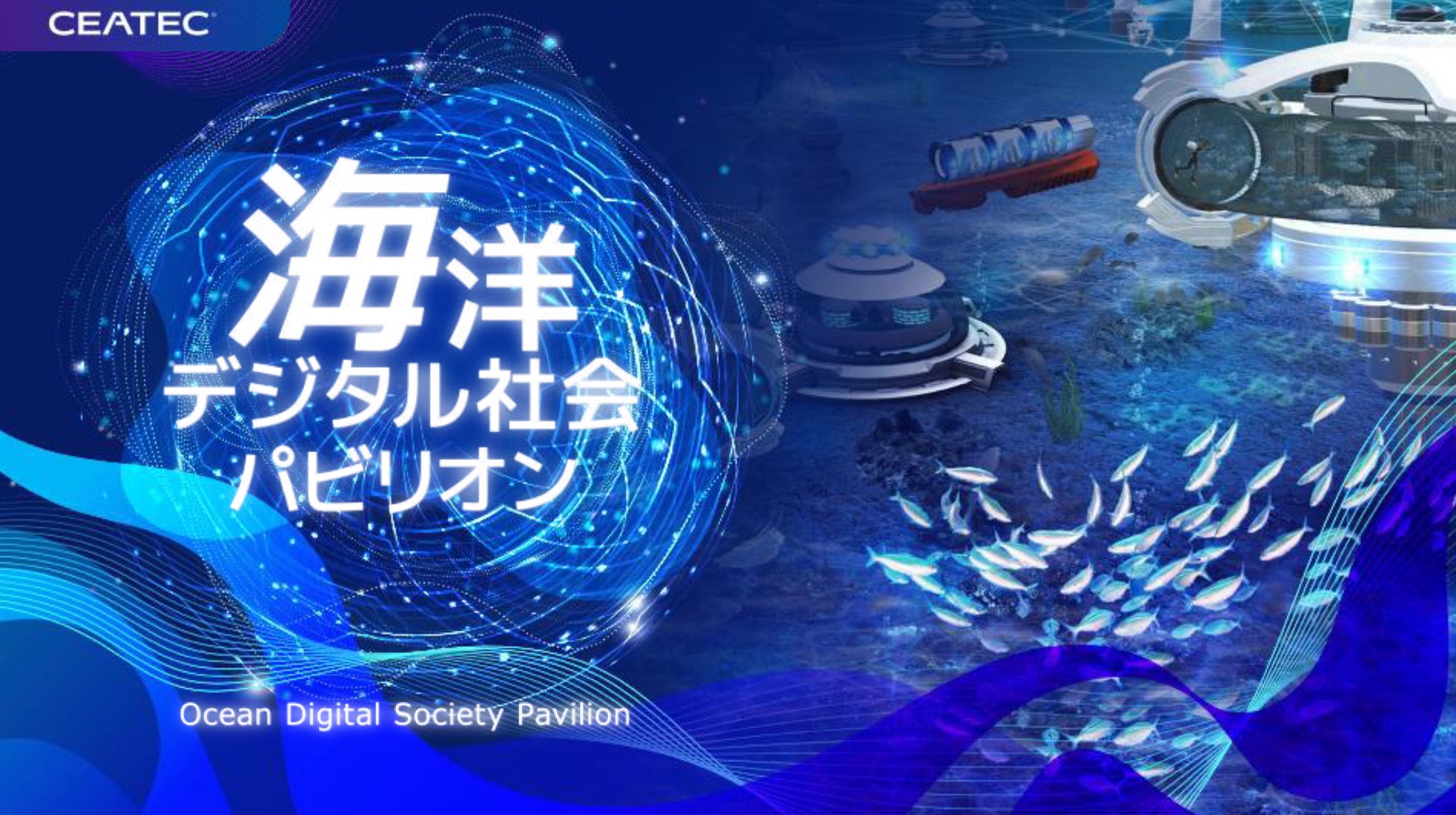 CEATEC内の「パートナーズ&グローバルパーク」に設けられる海洋デジタル社会パビリオンは、最先端のスマート水産・養殖、環境モニタリング、再生可能エネルギー、水中ロボット等、海洋ビジネスの最新動向を発信するパビリオンで、海洋産業へのデジタル技術の活用や次世代に向けた人材育成の取り組みを展開します。