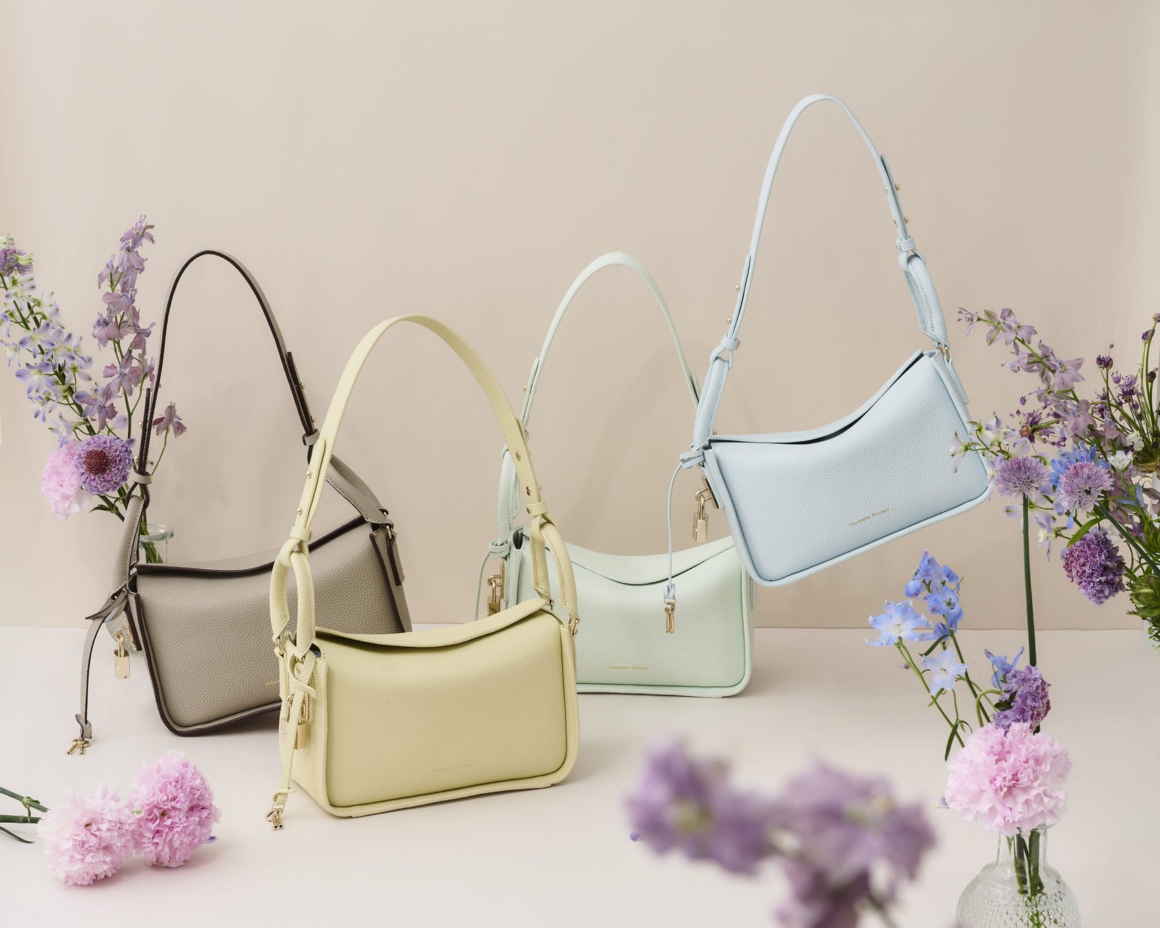 新たに、ミント、グレージュ、ライトブルー、ペールイエローのパステルカラーがラインナップ。柔らかな優しいカラーが女性らしいスタイリングにまとまり、