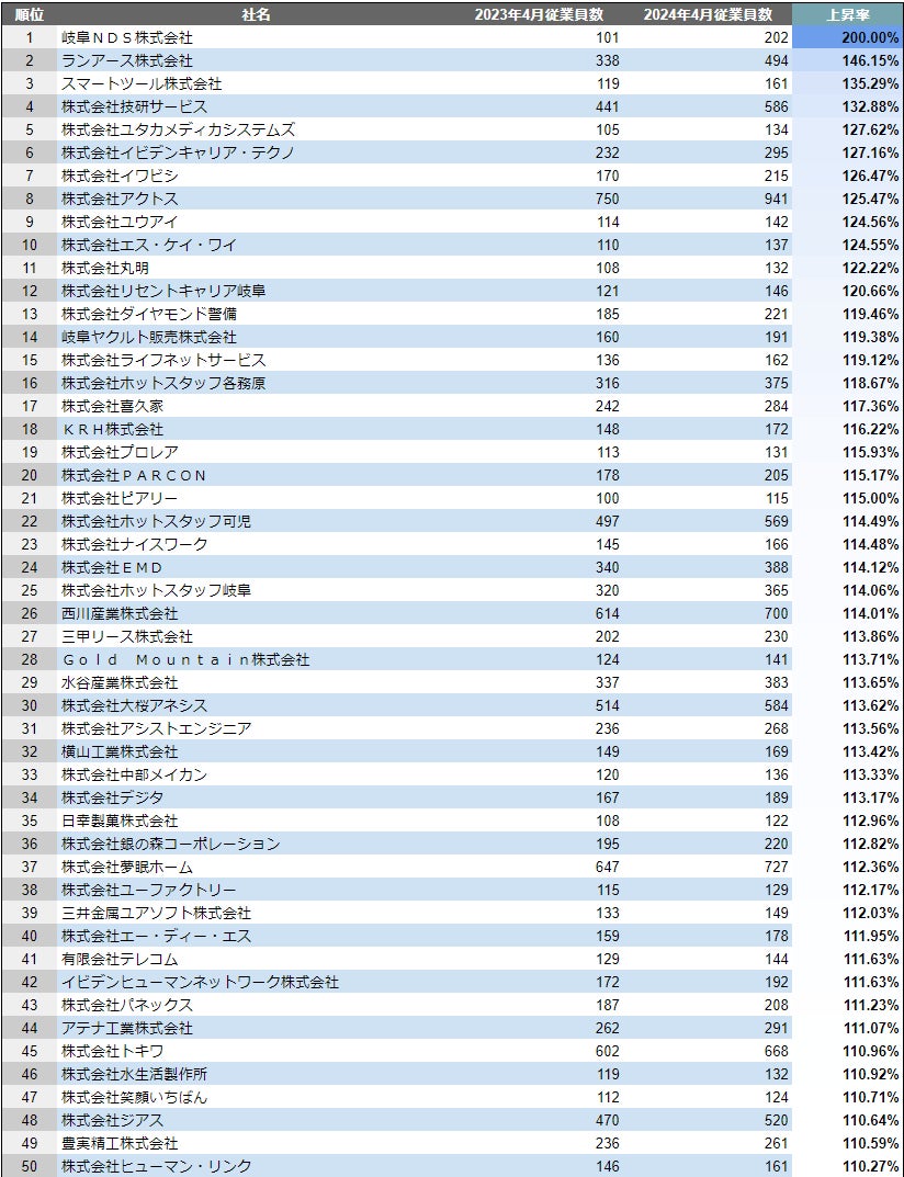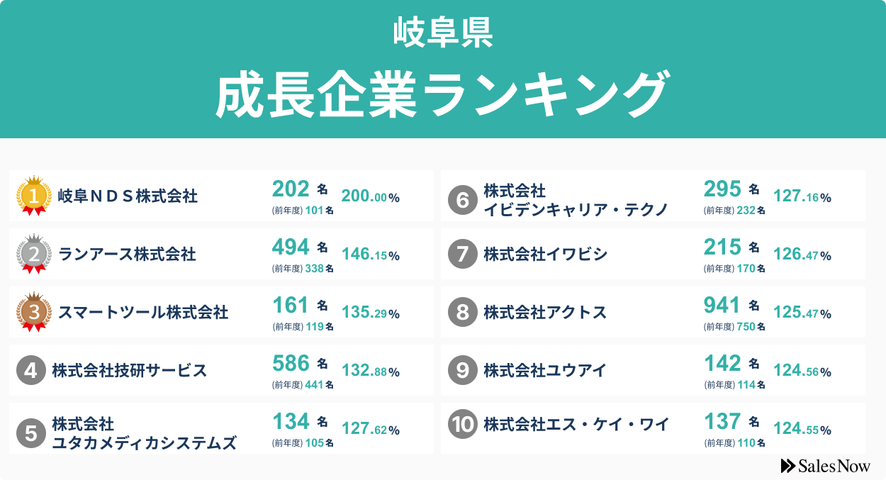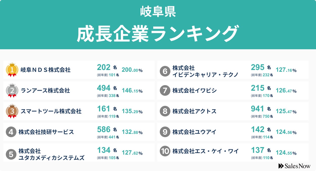 【岐阜県】成長企業ランキングTOP50!/SalesNow DBレポート
