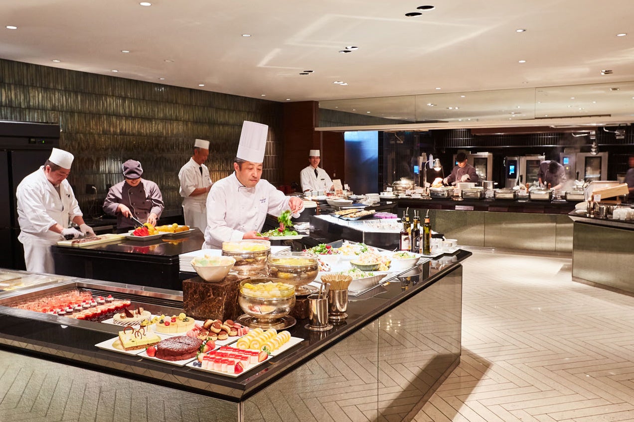 「ヘルシー、ビューティー、フレッシュ」をコンセプトに、ライブ感あふれるブッフェスタイルを展開するシェフズ ライブ キッチンは、シェフが目の前で料理するパフォーマンスをお楽しみいただけます。ブッフェの前にテーブルへお届けするファーストディッシュ「コラーゲンたっぷり美肌&健康スープ」は、当店自慢の一品です。少人数グループに最適な個室もございます。