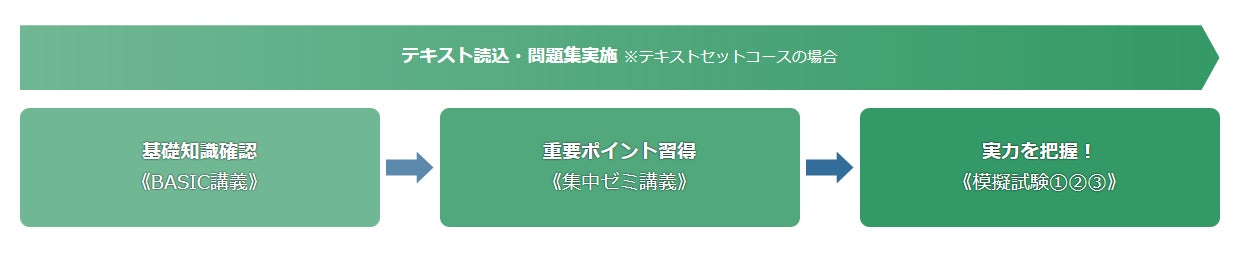 最新版の教材セットに加え重要ポイント講義と模擬試験をセットに