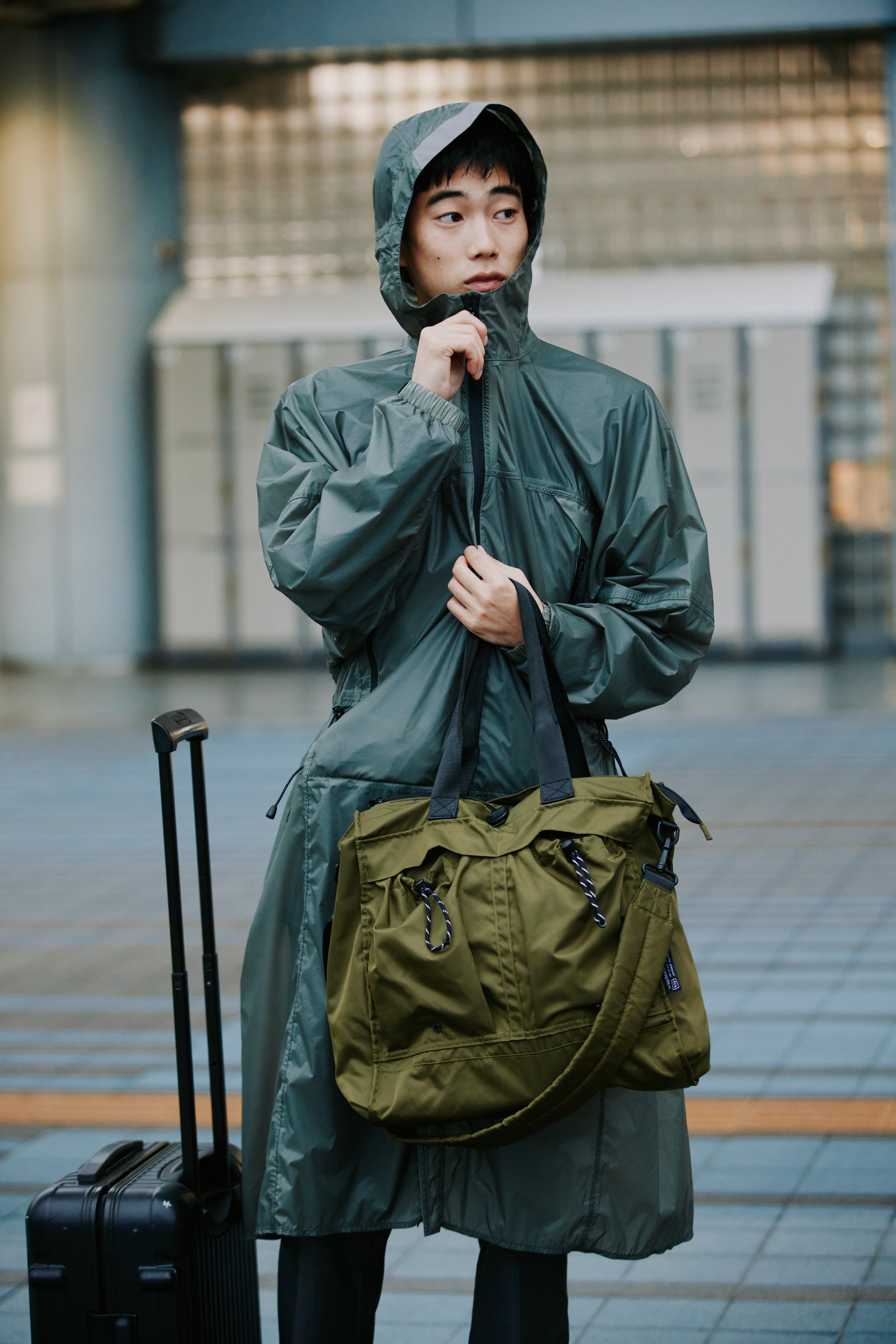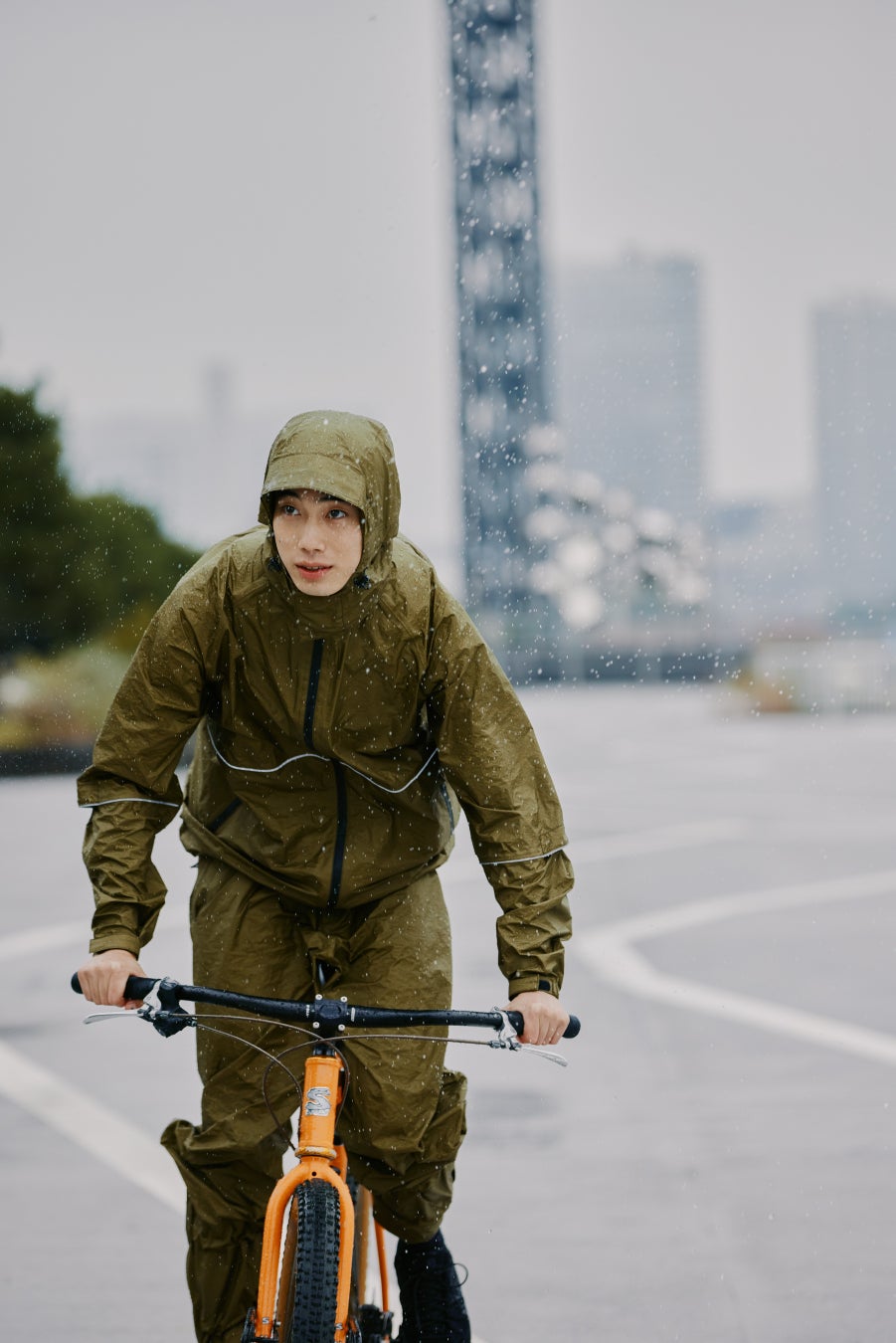 何気ない日常の風景の中で、軽量性や防水性といった機能が自然に活きています。