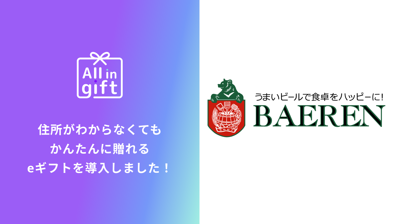 eギフトアプリの「All in gift」、「ベアレンビール 公式Webショップ」にて採用