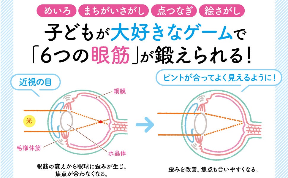 そこで本書では、迷路、間違い探し、クイズなど、子どもがゲーム感覚でできる眼筋トレーニングを豊富に紹介。楽しんでいるうちに、自然に子どもの目がよくなる一冊です。