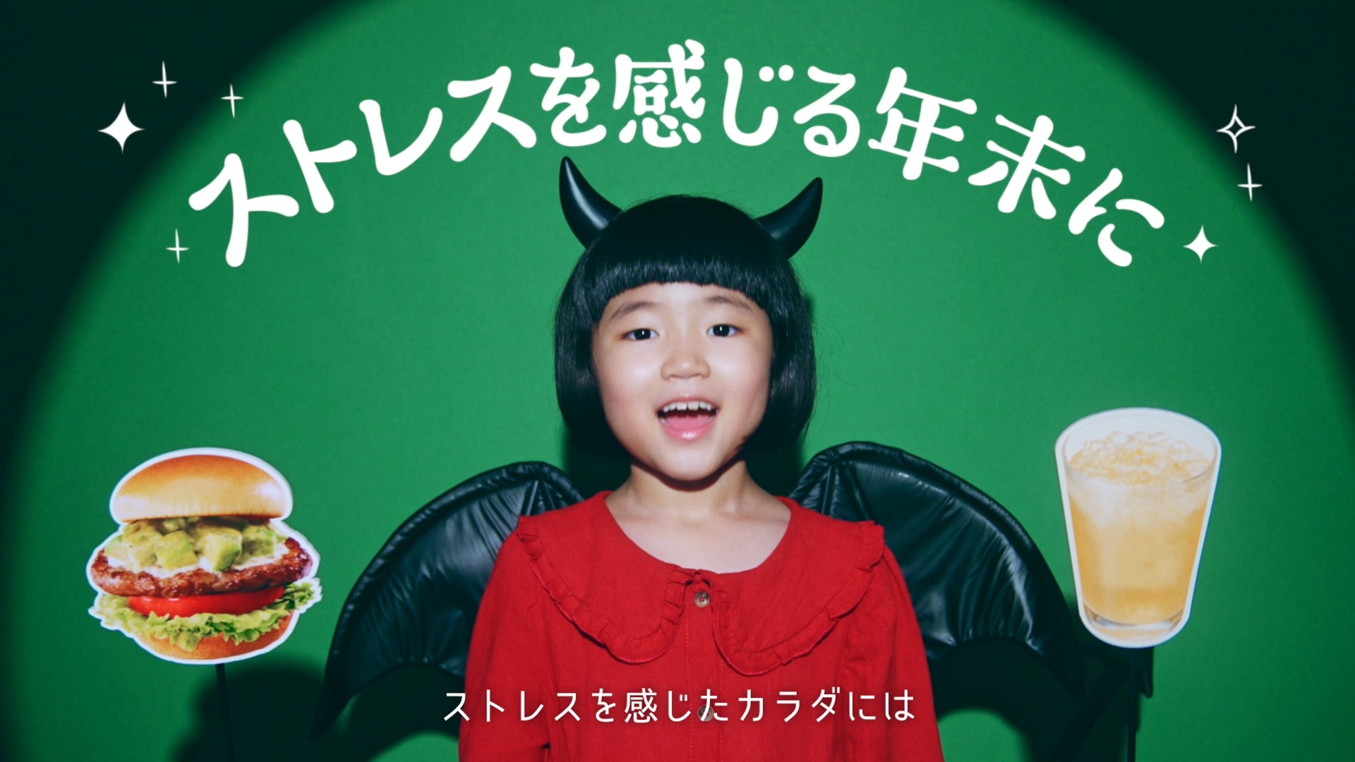 本キャンペーンは、慌ただしい年末年始の期間にちょっとした“自分へのご褒美”として、メインのハンバーガーだけでなく、ドリンクやデザートなどと一緒にモスのディナーをお楽しみいただきたいという思いから生まれました。子あくま役には、大人顔負けの振る舞いでも話題の子役・永尾柚乃さんを起用。「サイドメニューまで食べるのは少し罪悪感・・でも、たまには自分を甘やかして好きなものを思いっきり食べたい!」という方に向け、子あくまが大人びたセリフと表情でついついサイドメニューまで食べたくなる甘いささやきをお届けします。
