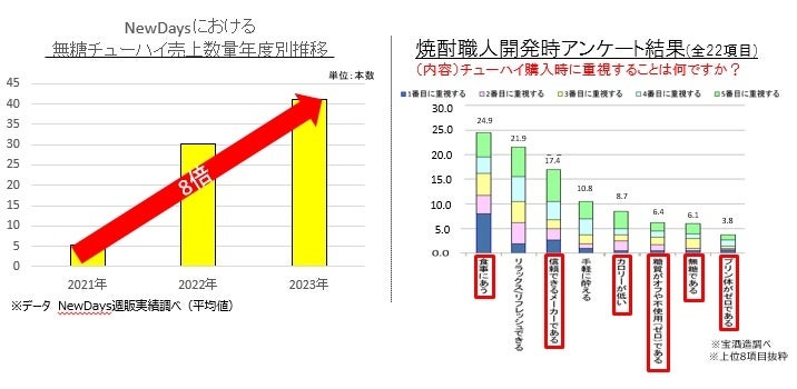 ・NewDaysにおける無糖チューハイの売上数量は2年前と比較して8倍に成長