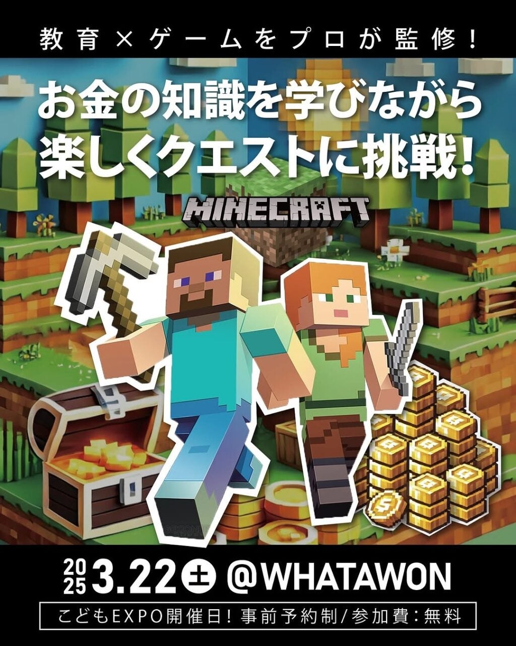 子どもたちにリアルなお仕事体験と学びの場を!「WHATAWONこどもEXPO」が、3月22日(土)に開催決定。バリスタやピザ職人、SNS発信など憧れのお仕事に挑戦できるほか、花束づくりやマインクラフトを活用した“お金の知識”を学ぶイベントも登場!子どもたちの「やってみたい!」を叶える、特別な1日をお届けします。
