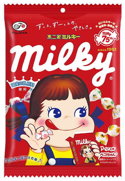 1951年の発売以来、「ミルキー」は世代を超えて多くの人のそばに寄り添い、笑顔や、ほっとするひとときを届けてきました。そして発売75周年を迎えた今年、改めて「そのままでいいよ」というメッセージを通じて、時代や暮らしの変化に寄り添いながら、一人ひとりの日常にやさしく寄り添う存在であり続けたいと考えています。