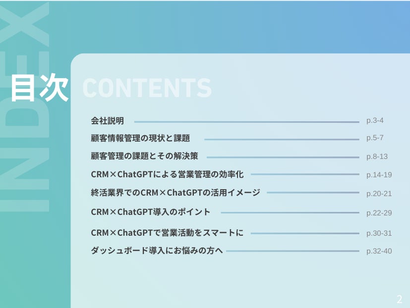 株式会社ベクトル(本社:東京都港区、代表取締役会長兼社長:西江 肇司、東証プライム:6058)の子会社であるOwned株式会社(東京都品川区、代表取締役社長、石井翔、以下「当社」)は、終活業界向けに「CRM×ChatGPTで営業管理をする方法をまとめたレポート」の2025年3月版(全40ページ)を無料公開いたしました。