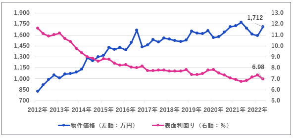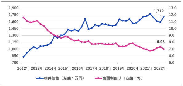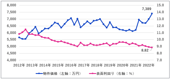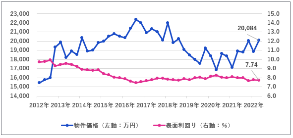 投資用物件の全種別で平均利回りが低下、価格上昇に