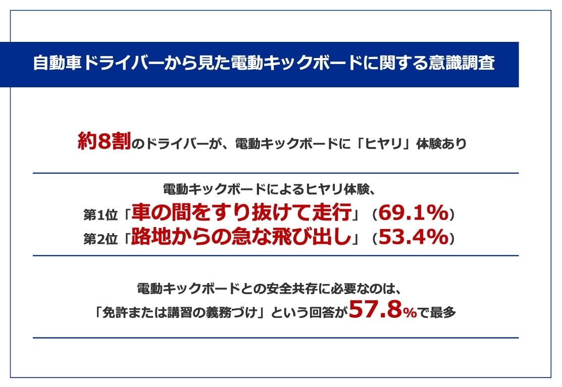 約8割のドライバーが、電動キックボードに「ヒヤリ」体験あり