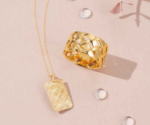 ゴールドを贅沢に使ったジュエリーをご提案する「カンデオ バイ フェアリー」からは、編み込み風リングとホログラムデザインのリバーシプルペンダントが登場。地金の輝きを堪能いただけるアイテムです。