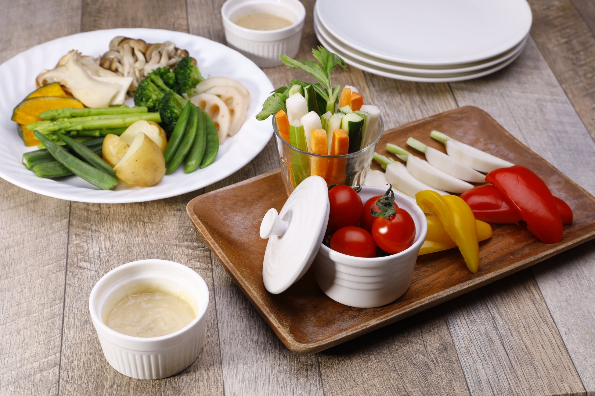 生野菜・温野菜のどちらでもおいしく食べられる、野菜のためのディップソースです。