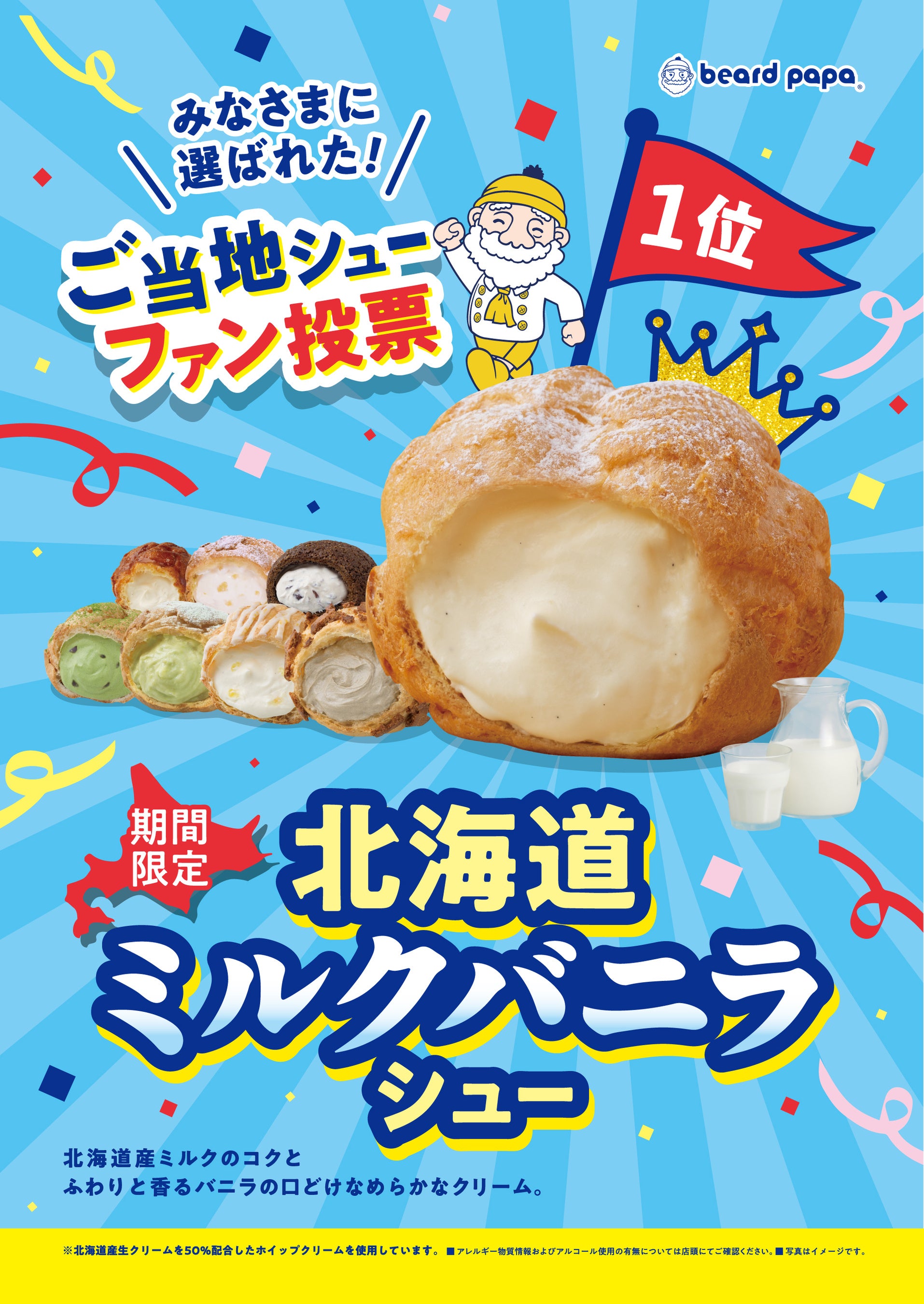 ビアードパパご当地シューファン投票第1位“北海道ミルクバニラシュー”が約7年ぶりに復活!総投票数17,898票の頂点が1月6日より期間限定で登場
