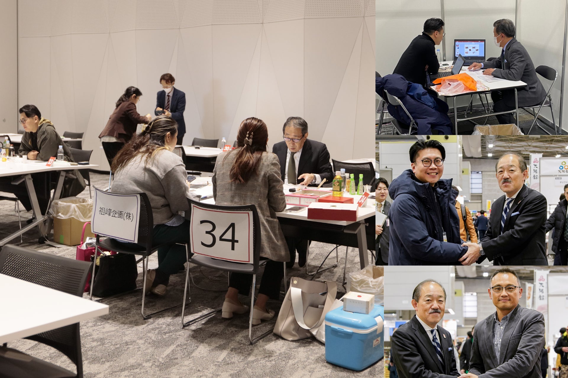 画像:(右中央)Maxim Group様とFOODSTYLE実行委員長、(右下)FOODSTYLE実行委員長と商田実業様、(ほか)商談風景