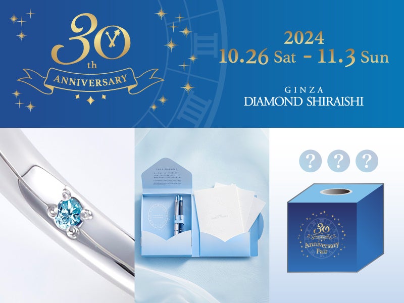 日本最大級の成約数を誇り、全国に63店舗を展開するブライダルジュエリー専門店「銀座ダイヤモンドシライシ」(運営:株式会社 NEW ART※旧株式会社ニューアート・シーマ、東京都中央区、代表 濵野えり)は、2024年11月3日で創立30周年を迎えます。それに先駆けて10月26日(土)~11月3日(日)の期間、銀座ダイヤモンドシライシ全店にて「30th Anniversary Fair(30tn アニバーサリー フェア)」を開催致します。