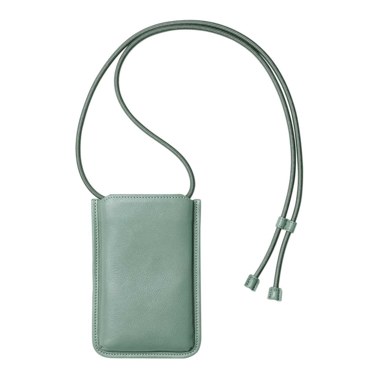 革が柔らかく、開口部は留め具がないので、スマホをサッと出し入れ可能。背面のカードホルダーに交通系ICカードやカードキーを差しておけば、スマホショルダーをかざすだけで改札やエントランスを通過できます。ストラップの長さは、好みの位置に結びを入れて自由に調節可能。また、クッション性のある太めのストラップで、体への当たりが優しくなっています。