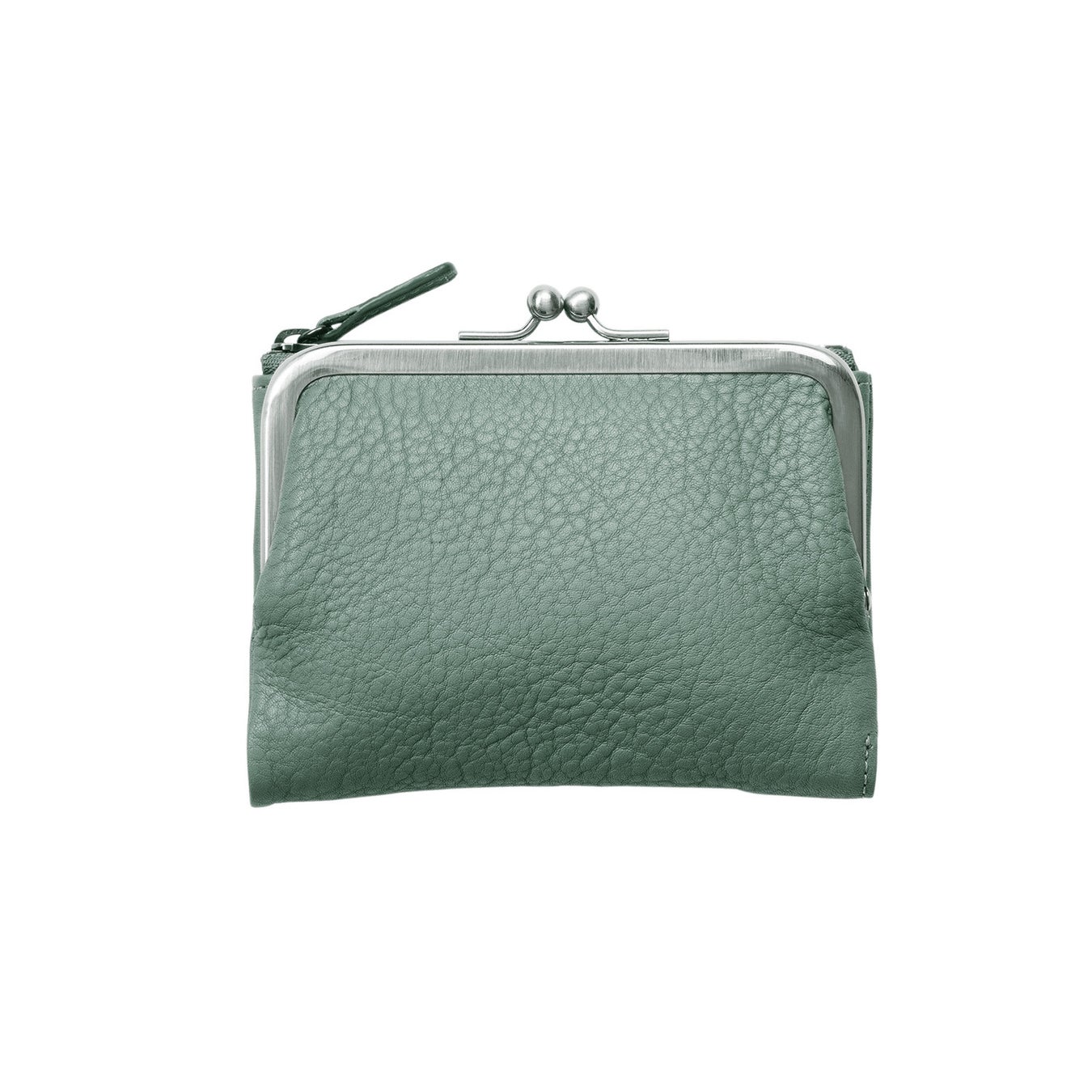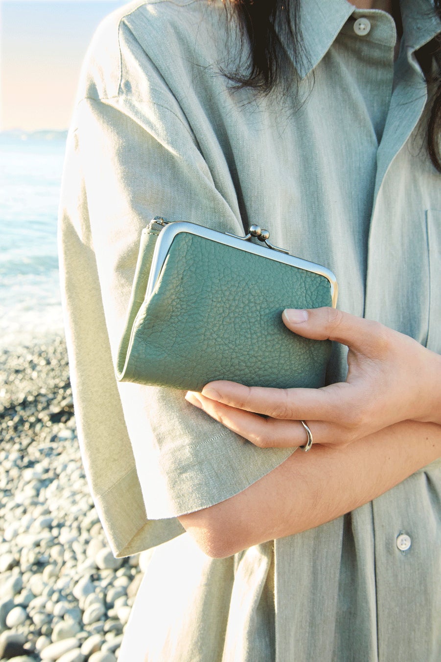 下部の形をスクエア状に仕上げることで、モダンなテイストにアレンジしたがま口財布です。軽やかな印象を与える立体感のあるシルエットもキーポイント。内装には2段のカードホルダーを用意し、小銭とカードを分けられるよう利便性も意識しました。